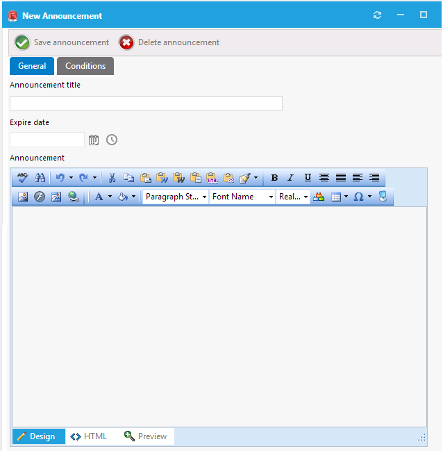 5. In the Expire date field, enter the date and time after which you no longer want this announcement displayed. If you do not enter an Expire date, the announcement will not expire.