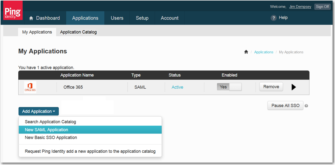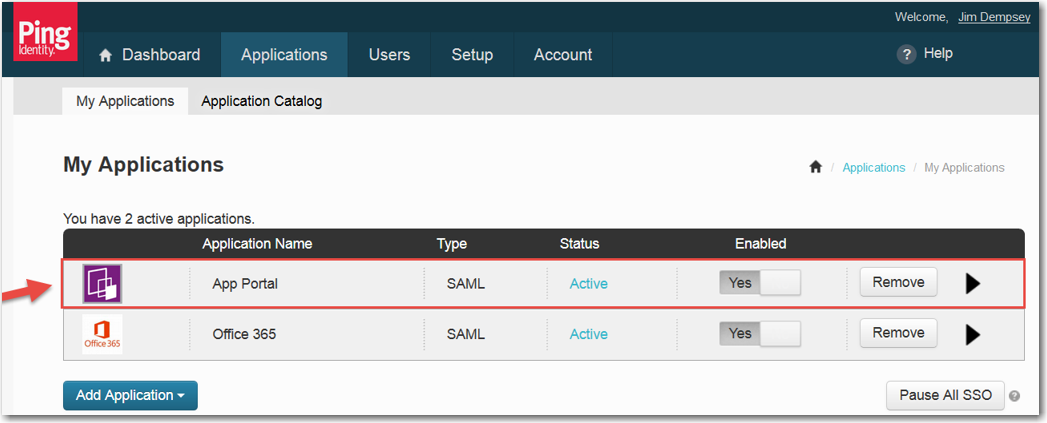 1. Log into Ping Identity as an admin and open the My Applications tab on the Applications menu.