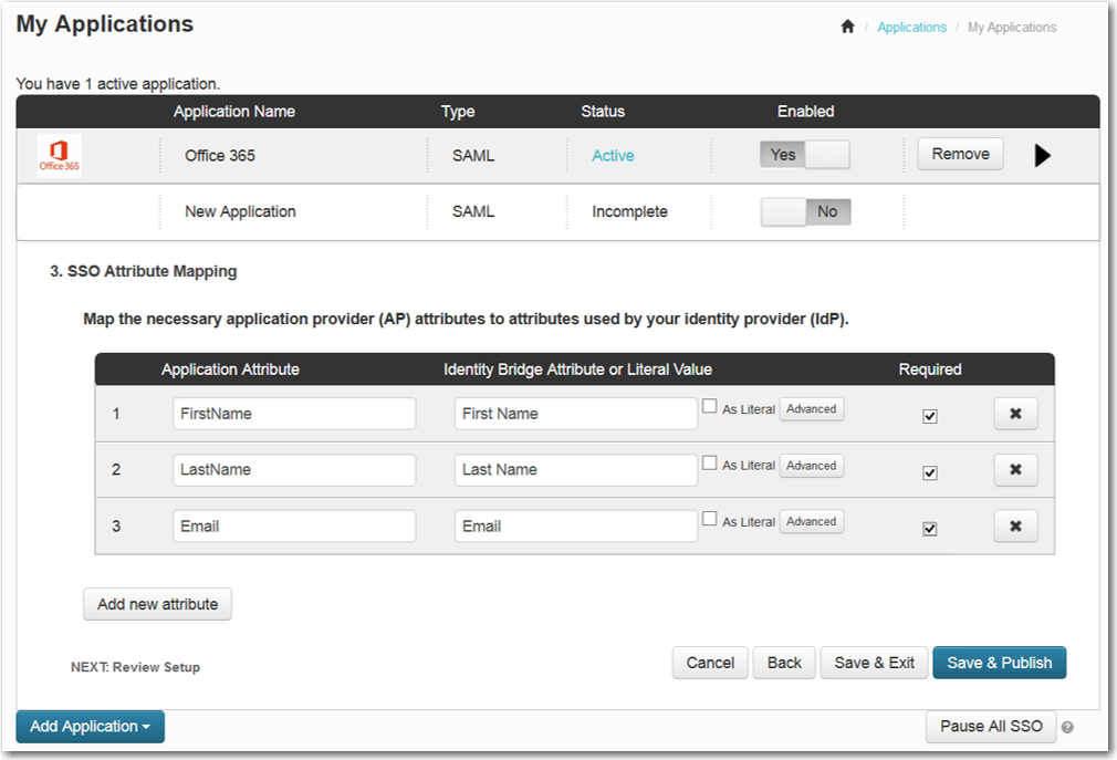 13. Click Continue to Next Step. The 3. SSO Attribute Mapping view opens.