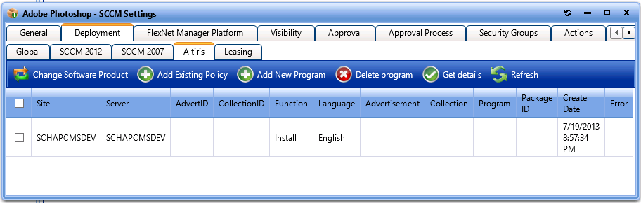 Click Add Program. The policy is now listed on the Deployment > Altiris tab.