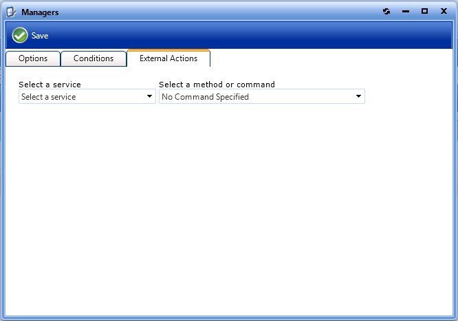6. From the Select a service and Select a method or command lists, select the appropriate service and command.