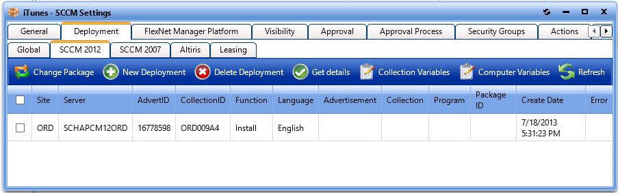 Open the Deployment > SCCM 2012 subtab that contains the catalog item’s associated application or package.