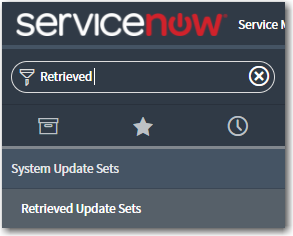 In the search results, click Retrieved Update Sets. The Retrieved Update Sets page opens.