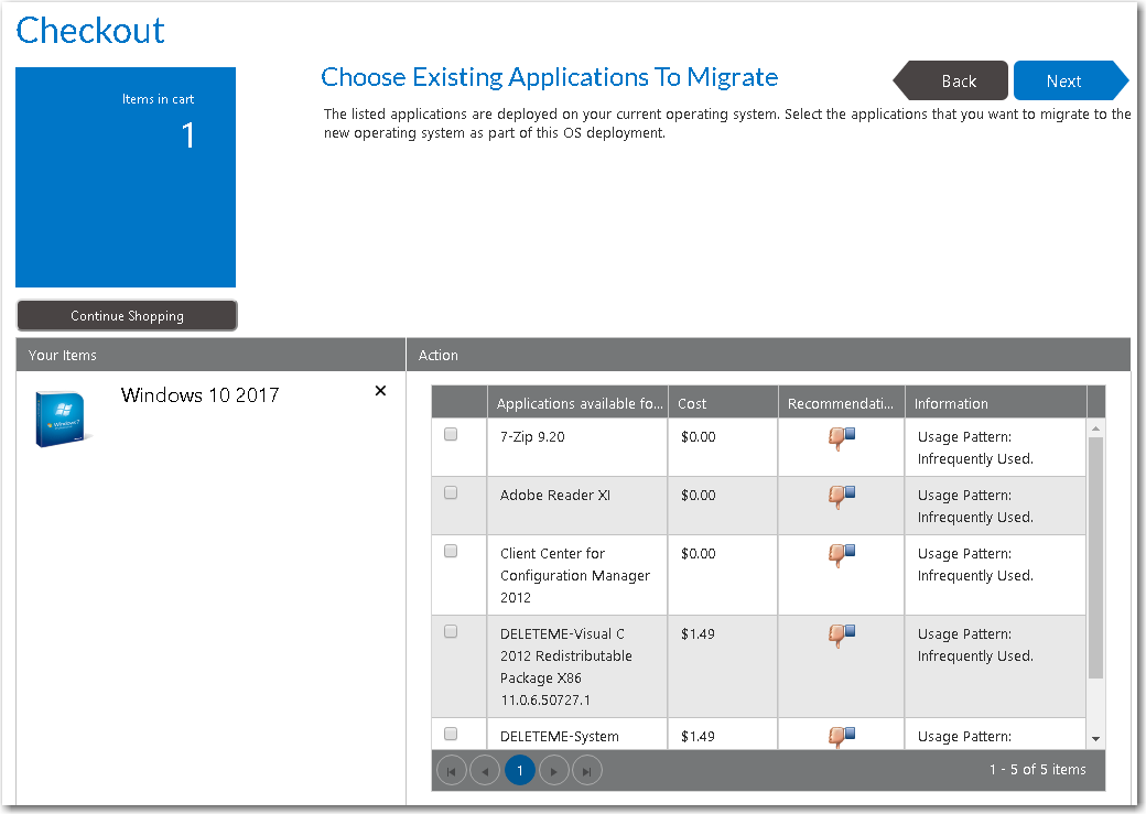 If the Enable requester to specify which existing applications to migrate option is also selected on the Site Management > Settings > Deployment > OS Deployment tab, then the requester will be able to specify which of the existing applications to migrate. If this option is not selected, all applications are automatically selected and cannot be unselected.